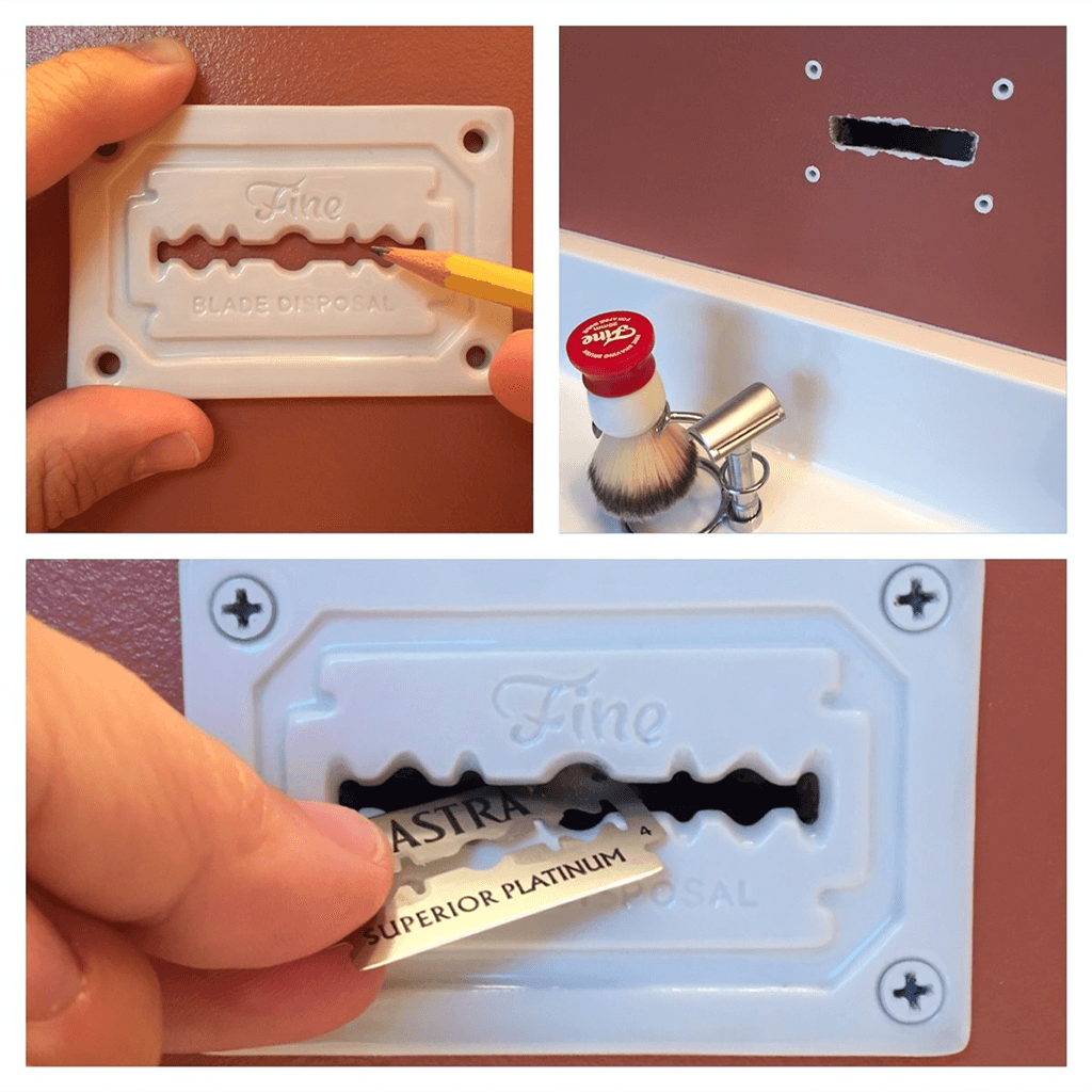 In the golden age of traditional wet shaving, throughout the mid 20th century, medicine cabinets and wash rooms the world over featured innocuous slots for safe and permanent disposal of used safety razor blades. The Fine "Forever" Blade bank brings back the convenience, with an added sense of style. DRYWALL SAW IS REQUIRED FOR INSTALLATION, BUT NOT INCLUDED WITH PURCHASE.